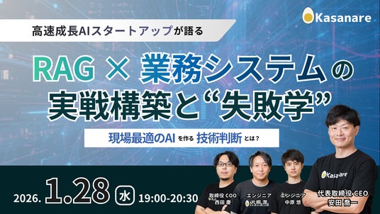 この度、2026年1月28日(水)19:00~20:30に、RAGを業務システムに組み込み、現場で使われ続ける状態に至るまでの過程で得た実践知と失敗事例を共有するオンラインセミナーを開催いたします。