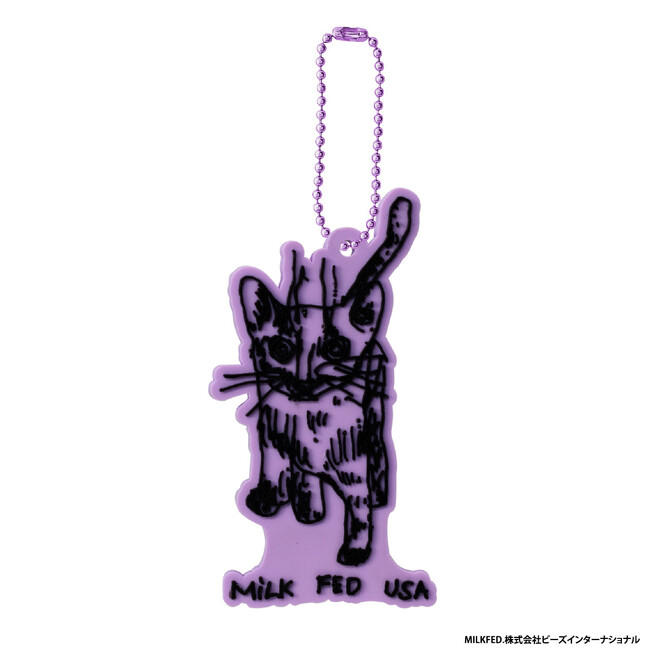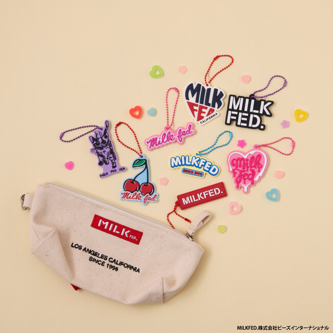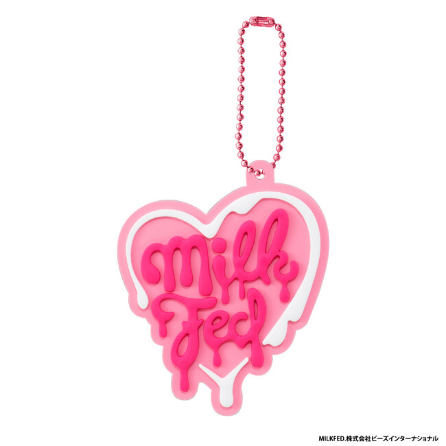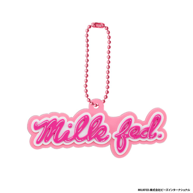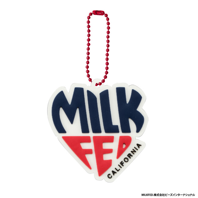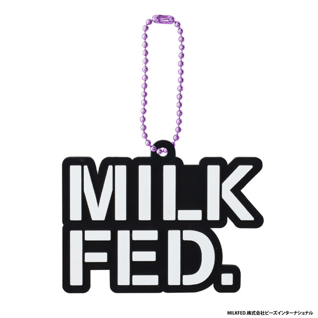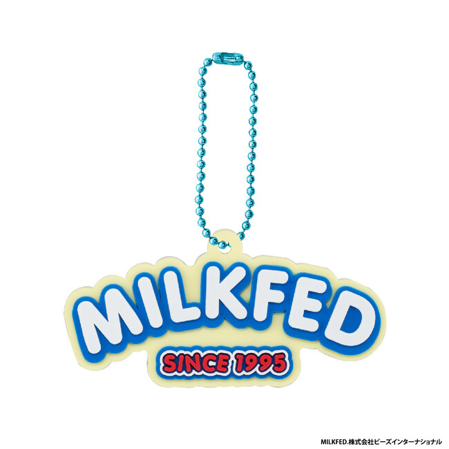本商品は、株式会社ビーズインターナショナルが取り扱うアパレルブランド「MILKFED.」のブランドロゴのラバーマスコットです。表面は凹凸のある立体的な仕様になっており、ボールチェーンはロゴデザインに合わせた色味のものが付属しています。ラインアップは、様々な年代の方に思い入れのある人気のロゴ全8種です。