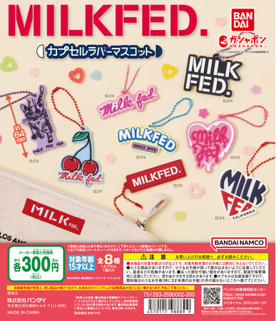 株式会社バンダイ ベンダー事業部(本社:東京都台東区)は、株式会社ビーズインターナショナルが取り扱うアパレルブランド「MILKFED.」のロゴをラバーマスコットにした『MILKFED. カプセルラバーマスコット』(1回300 円・税10%込、全8種)を2023年11月第2週より全国のガシャポンバンダイオフィシャルショップ、玩具売場、量販店、家電店などに設置されたカプセルトイ自販機にて発売いたします。