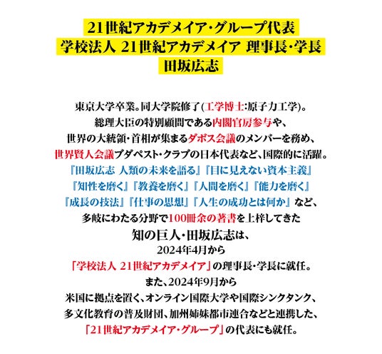 「学校法人 21世紀アカデメイア」の理事長・学長である