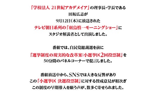 この「小選挙区 決選投票制」に対する賛成意見が相次ぎ