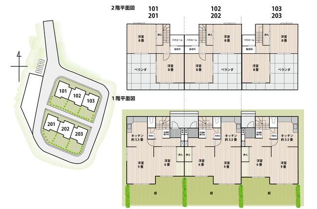 鉄筋コンクリート2階建て2棟6戸のうち3戸