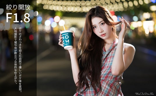 F1.8開放から中心部の解像感を確保しつつ、ボケのざわつきを抑えた自然で優しいボケ味を実現。被写体が際立つ立体的なポートレート描写を可能にします。