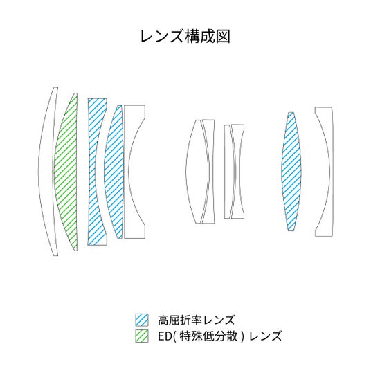 ・レンズ構成:9群11枚 (高屈折率レンズ3枚、EDレンズ1枚含む)