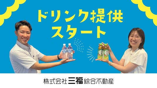 愛媛県松山市にアパマンショップ加盟店を3店舗展開する株式会社三福綜合不動産(代表取締役社長:中矢孝則)は、2025年7月よりご来店のお客様を対象にペットボトル飲料の提供を開始いたしました。