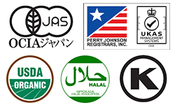 カクニ茶藤は、「不易流行」を理念に、伝統を継承しつつ、世界的な食品安全マネジメントシステム規格FSSC 22000に対応し、また国内外の有機認証を取得して、静岡から世界にお茶を届けています。オーガニック茶の栽培・加工・輸出ならびに抹茶や粉末茶飲料の開発など革新的なビジネス展開を行い、国内の優良農家と連携し、特にオーガニック原料の開発に努めています。2011年以降、海外に通用する食品安全を目指し、取り組みを強化してきました。2014年にFSSC 22000の初回認証を取得し、現在では、有機製品に関するJASの「有機加工食品生産行程管理者」及び「有機加工食品輸入業者」認証やUSDA/NOP(米国農務省の全米オーガニックプログラム)認証、宗教的な食事規定に関するHALAL(ハラール)やKosher(コーシャ)認証、また持続可能な社会に向けたレインフォレスト・アライアンス認証などの規格に対応し、誰もが安心して味わえる製品を提供しています。