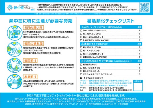 熱中症にかかる方を減らし、亡くなってしまう方をゼロにすることを目指して、一般財団法人 日本気象協会が推進するプロジェクトです。2013年夏のプロジェクト発足以来、熱中症の発生に大きな影響を与える気象情報の発信を核に、熱中症に関する正しい知識と対策をより多くの方に知ってもらう活動を展開してきました。活動12年目となる2024年は「地球沸騰化時代の熱中症対策」をテーマに、熱中症の予防啓発活動を実践します。気象災害のひとつである熱中症への防災意識を高め、暑さに備えるための情報発信を強化します。