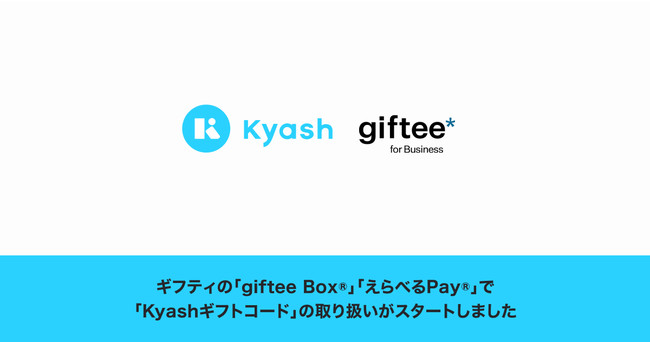 デジタルウォレットアプリ「Kyash」を提供する株式会社Kyash(本社:東京都港区、代表取締役社長:鷹取 真一)は、eギフトプラットフォーム事業を展開する株式会社ギフティ(本社:東京都品川区/代表取締役:太田 睦、鈴木 達哉/以下、ギフティ)の提供する「giftee for Business」でのKyashギフトコード販売を開始しました。