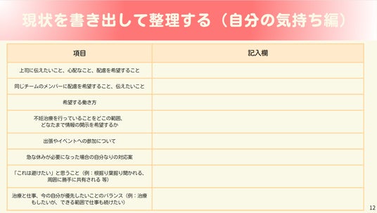 振り返りシート:治療と仕事の進捗を自己管理するためのツール