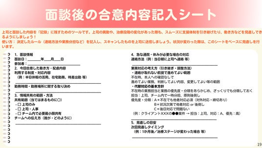 - 治療の流れ・気持ちの整理シート・上司との面談活用シート・社内制度一覧など、当事者に寄り添った実践的な内容を収録