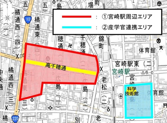 ~国の交付金を活用し、まちなかの賑わい創出、スポーツランドみやざきの新たな価値創造、持続可能な社会づくりを支える人材育成を目指す~ 宮崎駅周辺、産学官連携、運動公園エリアで展開