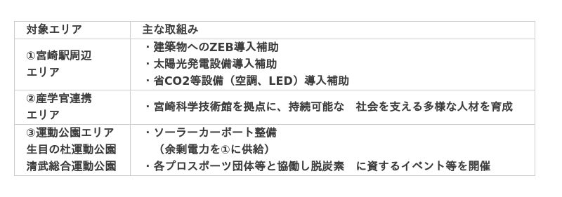 宮崎県や宮崎大学、民間事業者と連携し、脱炭素先行地域の取り組みを進め、更に本市全体に波及させることで、市制100周年を迎えた本市の次の100年先を見据えた、未来に向けた持続可能なまちづくりを推進してまいります。