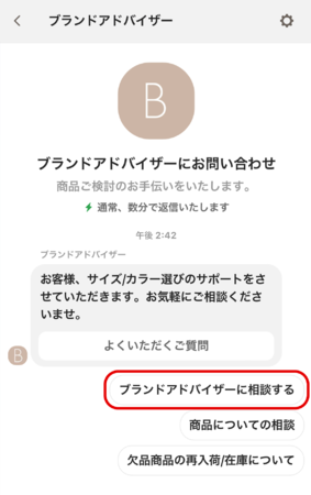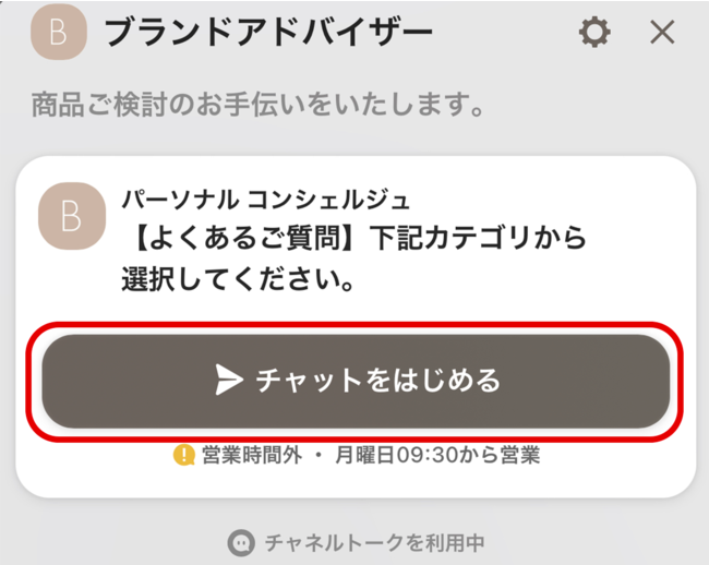 公式オンラインショップ内の商品でお悩みのお客様をブランドアドバイザーがサポート。