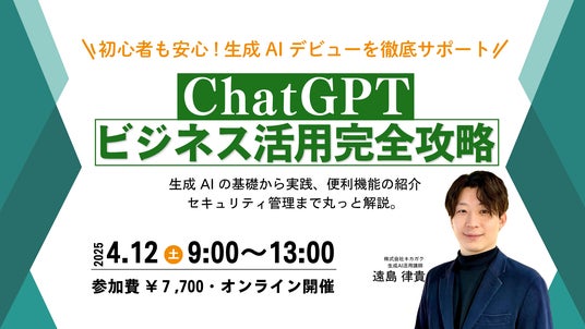 「半日で生成 AI 仕事革命!ChatGPT ビジネス活用完全攻略ウェビナー」を 2025 年 4 月 12 日に開催。