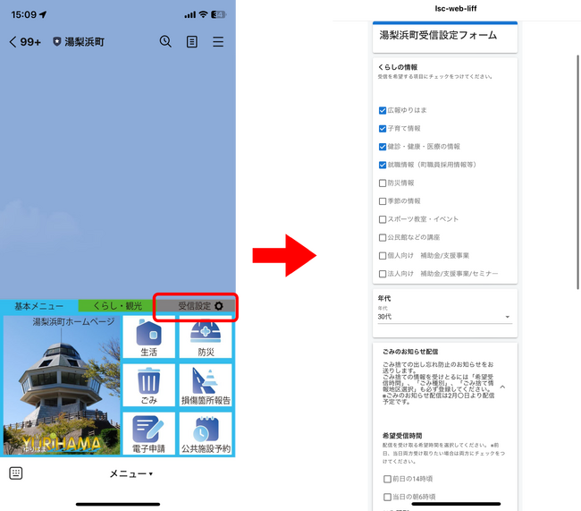 リッチメニューのタブ機能を導入し、「子育て」「ごみ」「防災」など生活に必要な情報や、「移住定住」「観光」など幅広いコンテンツの提供が可能となりました。