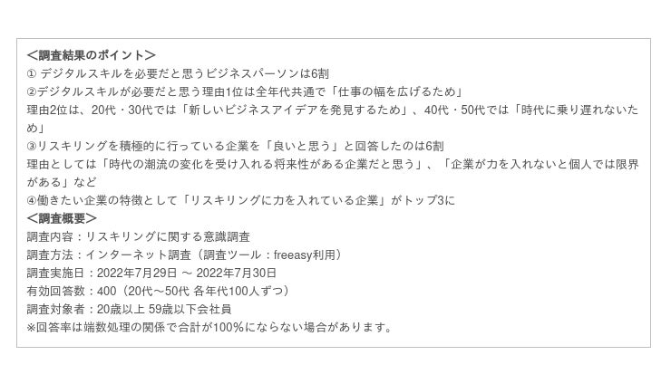 ~ビジネスパーソンのリスキリングに関する意識調査発表~