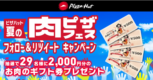 ピザハット 夏の肉ピザフェスティバル その4.:ピザハット公式Twitterのフォロー&リツイートで抽選で29名様に「お肉のギフト券 2,000円分」が当たる!
