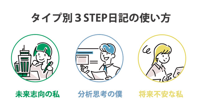◇未来志向タイプの使い方「プラス思考日記」として使用できる。