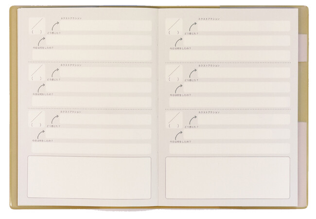 【1】その日の出来事を3行・3段階にわけて記入するだけのシンプルな仕様です。