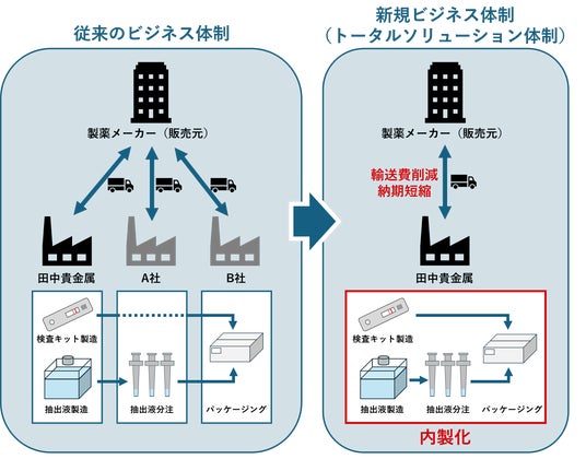 田中貴金属の産業用貴金属事業を展開する田中貴金属工業株式会社(本社:東京都中央区、代表取締役社長執行役員:田中 浩一朗)は、体外診断薬をはじめとする各種検査キットの受託製造事業において、全工程を一括で対応できるトータルソリューション体制を確立したことを発表します。