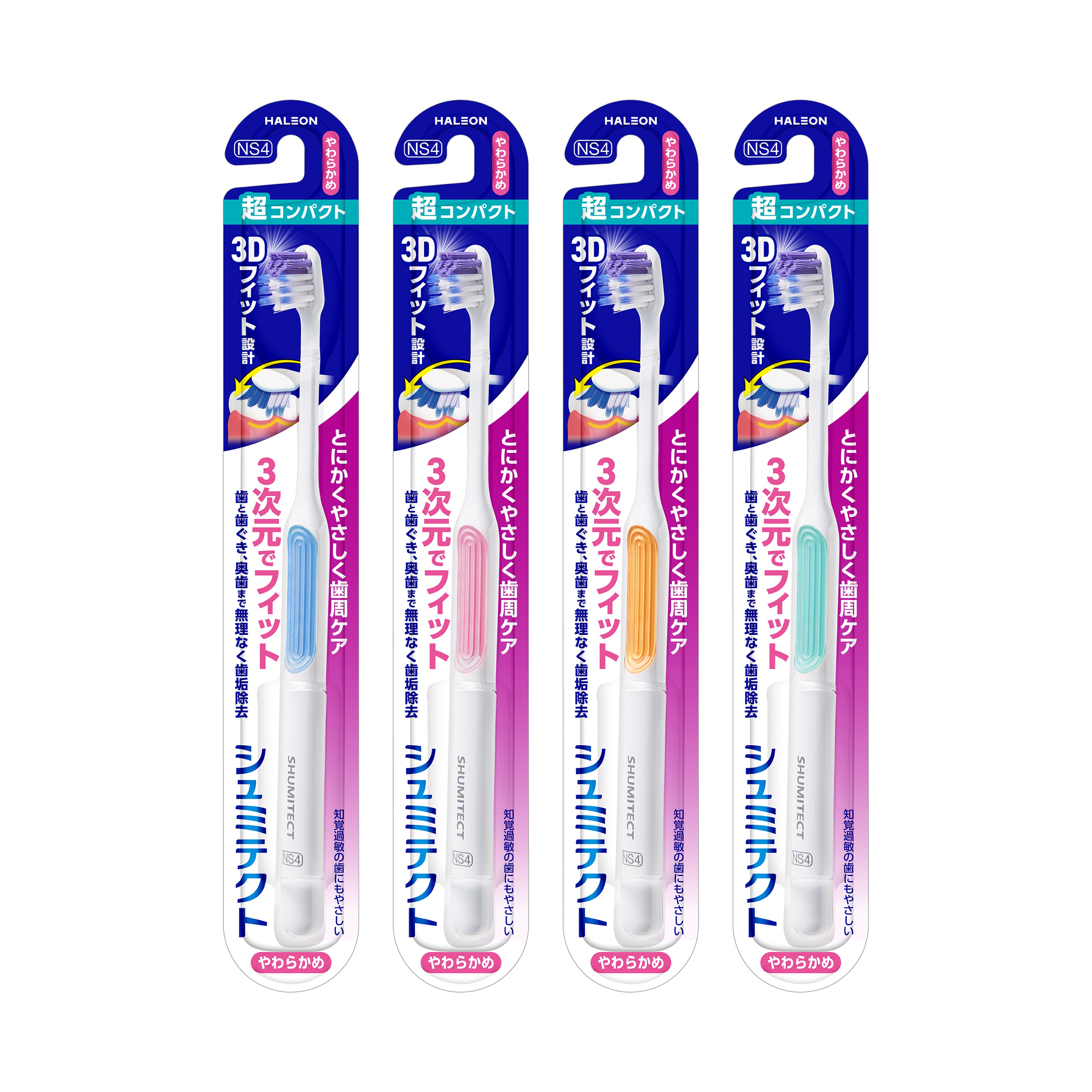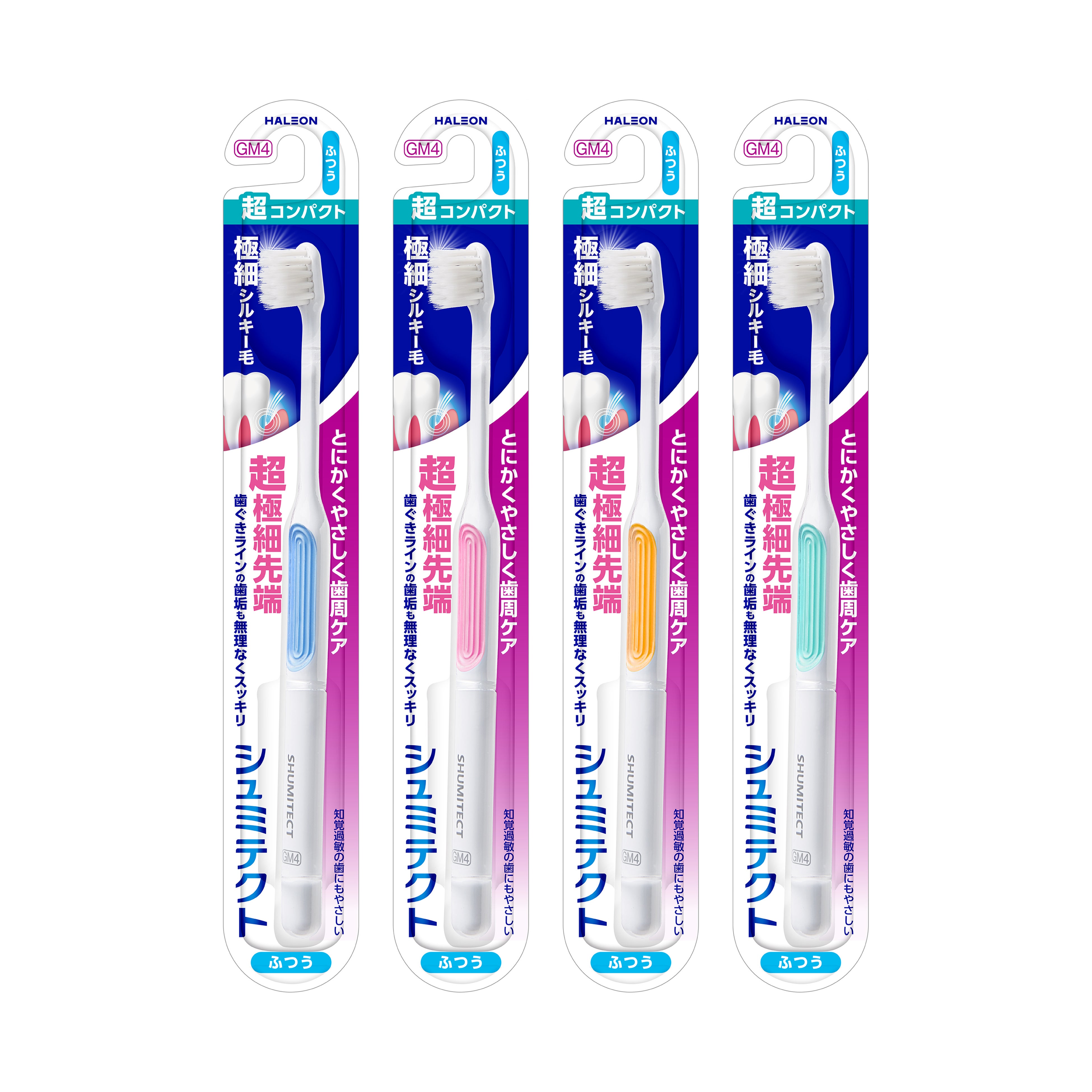 さらに、既存の『シュミテクト やさしく歯周ケア ハブラシ』シリーズもリニューアル。超コンパクト・コンパクト・レギュラー・ワイドの4種類のヘッドサイズを展開し、口腔環境や好みに合わせて選びやすいラインアップへと進化しました。