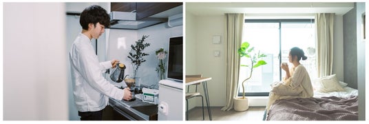「住む」と「泊まる」の2つの用途に最適化した、最短即日入居が可能なホテルレジデンスです。居住者が家を使わない時間は、ホテルとして貸し出し、その分の家賃を減額する料金システム「リレント」を搭載しています。二拠点生活や出張、長期の旅行など、さまざまなライフスタイルに対応し、フレキシブルな暮らしを実現します。