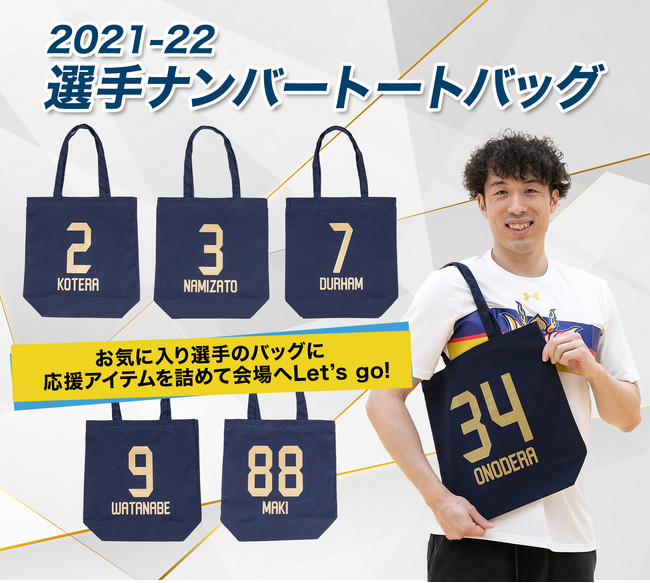 大好評の選手グッズシリーズに「選手ナンバートートバッグ」が登場!応援アイテムをバッグに詰めて会場で選手にエールを届けましょう。その他選手グッズも絶賛販売中ですので、ぜひお気に入りグッズをお買い求めください。
