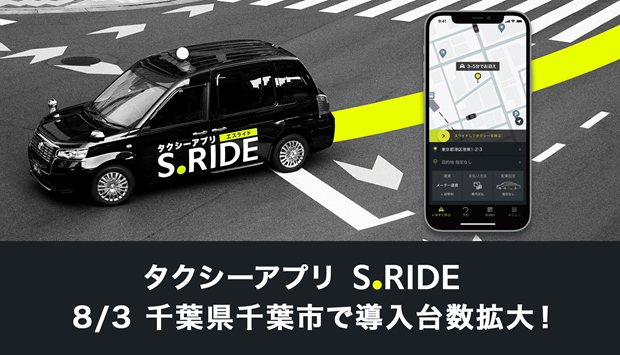 S.RIDE株式会社(本社:東京都港区、代表取締役:西浦賢治、以下、S.RIDE)は、2022 年8月3日から、三ツ矢エミタスタクシーグループの株式会社鹿野西岬タクシー(本社:千葉県千葉市、代表取締役:関口勝裕)のタクシー車両で、タクシーアプリ“S.RIDE(R)”のサービス※を千葉市で開始します。