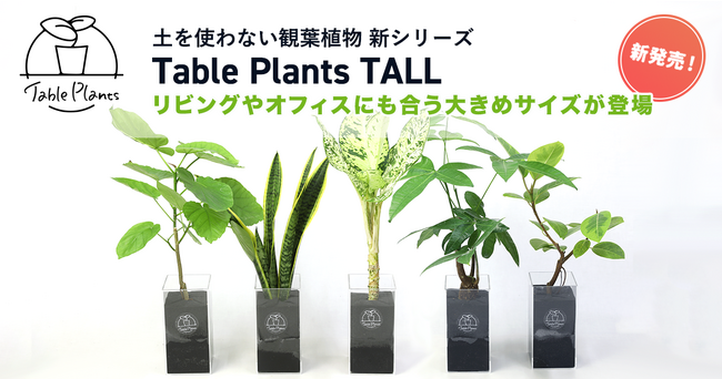 土を使わない観葉植物、Table Plantsは、土の代わりにスポンジを使って育てるGreenSnapオリジナルの観葉植物のシリーズで、観葉植物としては異例の3万個超の販売数を記録している大人気商品です。「土を使わないから清潔」「虫が付きにくい」「倒れてもこぼれないから安心」「水やりのタイミングが分かりやすい」などの理由から人気を博し、特に植物初心者やリピーターから好評を得て販売数を伸ばしています。今回、「Table Plants TALL」の新登場により、「Table Plants」(3号相当)、「Table Plants CUBE」(4号相当)と合わせて3サイズ展開となりました。
