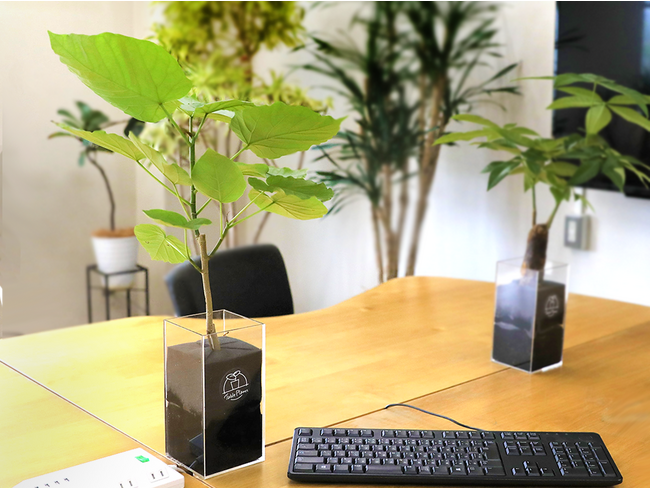 「Table Plants TALL」は、これまでの自宅での利用シーンに加え、とくにオフィス観葉の需要に応え、会議テーブルや広いオフィス空間をより印象的に飾れるよう生まれた商品です。