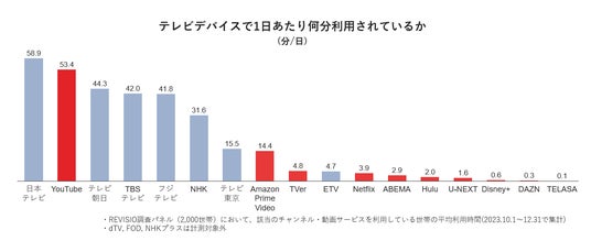 CTVの視聴時間は順調に伸び、「YouTube」が「日テレ」に続いて2位に