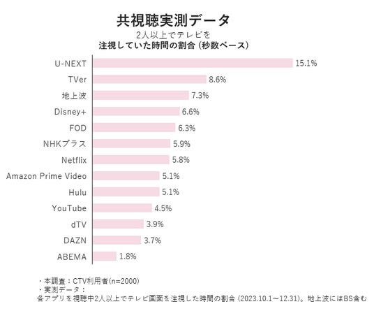 共視聴 は地上波番組を視聴可能な動画サービス「U-NEXT」や「TVer」で高い