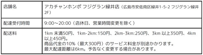 デリバリーサービス「Wolt(ウォルト)」を展開するWolt Japan株式会社は、このたび 「株式会社赤ちゃん本舗(本社:大阪市中央区)」と提携し、2022年8月4日(木)より札幌、仙台、広島の「アカチャンホンポ」計4店舗にてデリバリーサービスをスタートいたします。Woltがベビー用品の専門店と取り組みを開始するのは今回が初となります。サービス開始を記念して、2022年8月4日(木)~8月31日(水)まで期間限定キャンペーンを実施します。