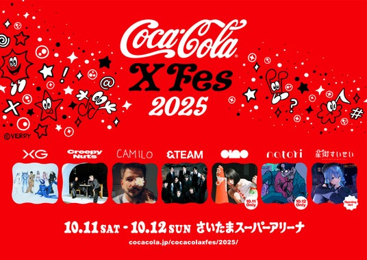 「Coca-Cola X Fes 2025」に出演するのはXG、Creepy Nuts、&TEAM、Camilo、ano、なとり、星街すいせいです。また、会場のアートディレクションを担当するのは、グラフィックアーティストとして国内外で多くの支持を集める VERDY(ヴェルディ)さんです。「Coca-Cola X Fes 2025」のテーマは、「あなたとつくるフェス」です。タイトルの「X(クロス)」には、来場者とアーティスト、そしてフェスで楽しめる多彩な体験が交じりあい、新たな特別な瞬間が生まれる、という想いが込められています。当日の会場では、アーティストのパフォーマンスはもちろん、ファッション、フード、ゲームなど、来場者が「夢中全開。」になるさまざまなコンテンツを展開予定です。「Coca-Cola X Fes 2025」でしか味わえない特別な体験を、ぜひお楽しみください。