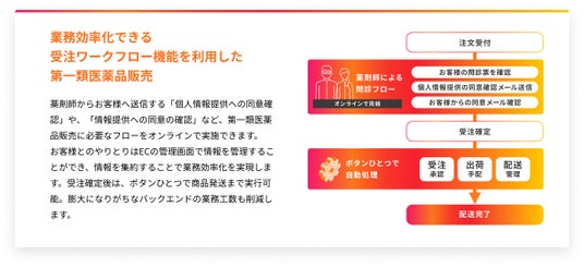 この機能により、管理者の工数を削減しながらお客様が手軽に第一類医薬品の購入が可能になります。