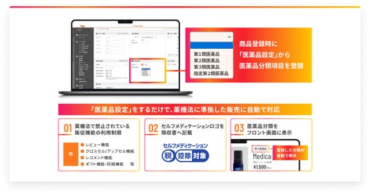 3.商品登録時に設定を行うだけで自動で薬機法に準拠した販売が簡単に実現可能