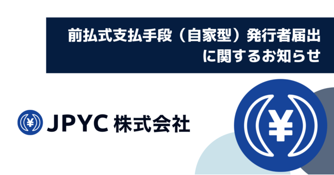 前払式支払手段扱いの日本円連動ステーブルコイン『JPYC(JPY Coin)』を取り扱うJPYC株式会社(東京都千代田区、代表取締役社長:岡部 典孝、以下JPYC社)は、財務省関東財務局への登録会社等一覧のうち「前払式支払手段(自家型)発行者届出一覧」に掲載されたことをお知らせいたします。併せて東京法務局に前払式支払手段の発行保証金の供託を完了したことをお知らせいたします。