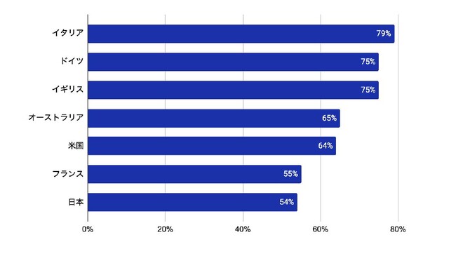 地域別のMFA導入率は、北米、APAC、EMEAで平均して64%の導入率ですが、国別に見た場合、日本でのMFA導入率が54%で遅れている傾向が見られます。