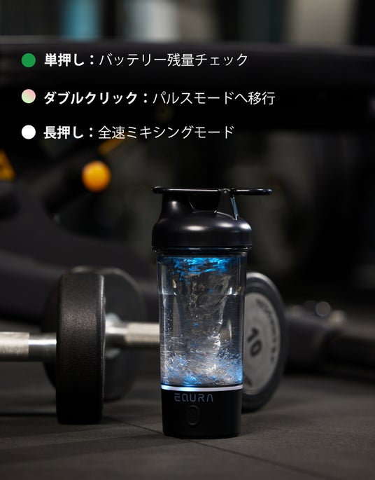 そんな不満を解消し、いつものプロテインをもっと飲みやすくため、equra電動シェイカーE-Pluseには強力な電動ミキサーを搭載。6500rmp/分の回転スピードで揺れることなく、ダマなく滑らかに仕上げます。