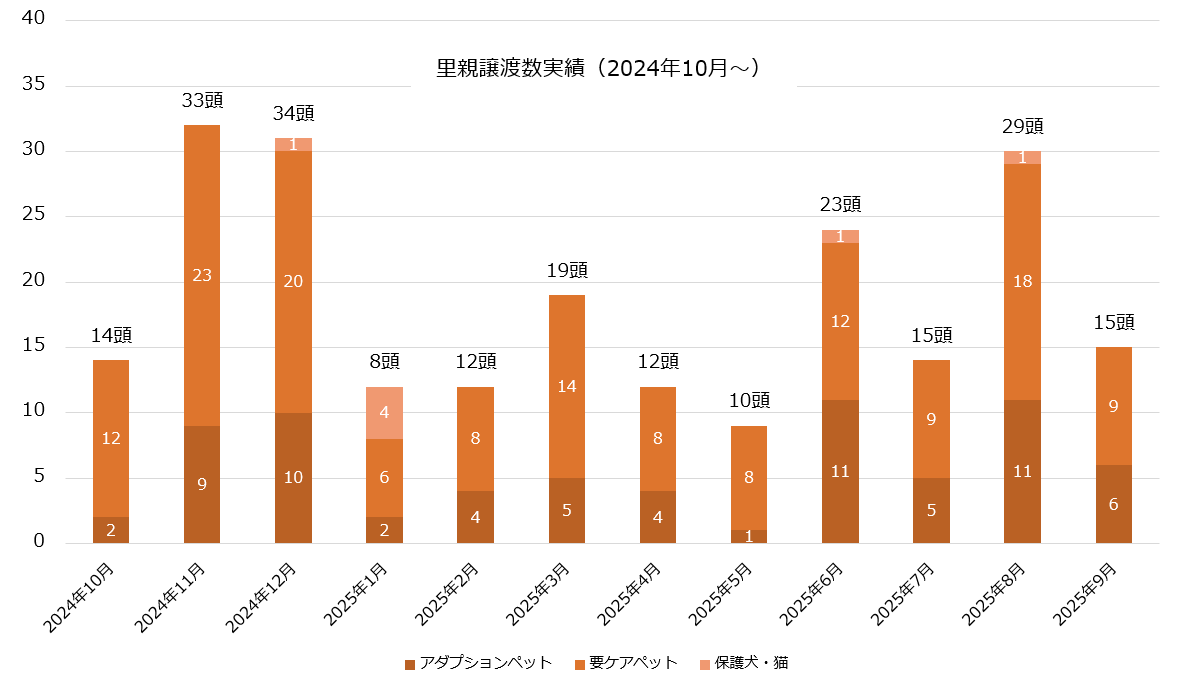 2025年9月度時点での里親探し活動実績と、現在里親を募集しているペットについてご紹介します。