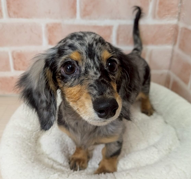 人懐っこく、甘えん坊、元気いっぱいのカニヘンダックスフンドの女の子です。