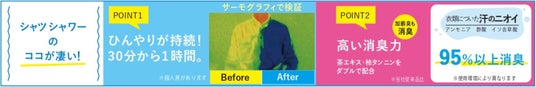 毎年さまざまなメディアに取り上げられております「ひんやりシャツシャワー」は、シャツにスプレーするだけでひんやり感を感じることができる手軽な涼感アイテムとして長年ご愛顧頂いております。
