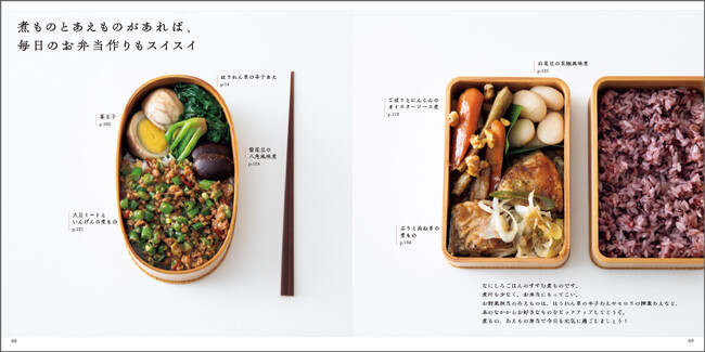 「なにしろ煮ものは仕込んでさえしまえば、手も時間も空きます。火が素材をおいしくしてくれているこの間に、あえものをささっと作る。合理的で、しかもおいしいものが食べられるのですから、最高の組み合わせです。」(本文「はじめに」より抜粋)。