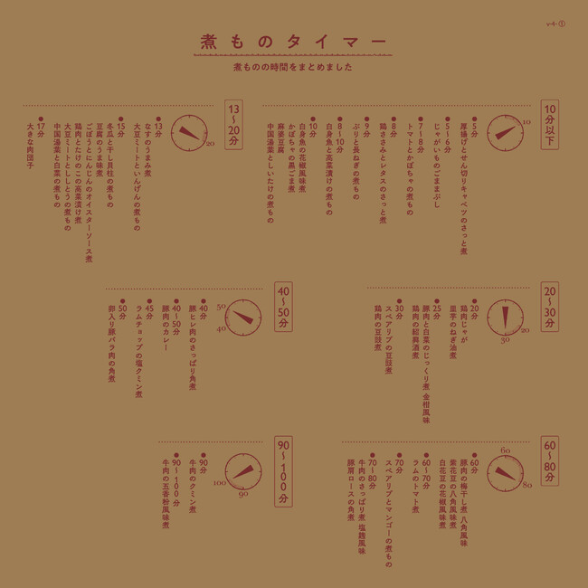 ▼裏表紙の「煮ものタイマー」。所要時間で献立を決めるのも○。
