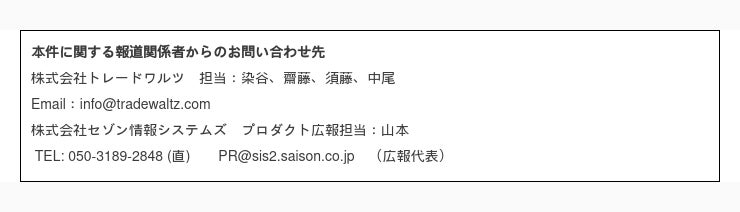 「株式会社セゾン情報システムズは、株式会社トレードワルツとの協業を心より歓迎します。