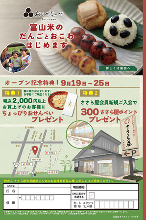 米どころ富山県に本社がある日の出屋製菓産業・ささら屋の新ブランド、お米のおやつカフェ「おこめぢゃや~Encafe~」がささら屋大阪住吉店に併設し、大阪初出店いたします。