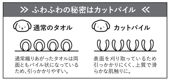さらに一般的なタオルと異なり、表面のパイルをカットすることででふわふわで心地良い感触を実現しました。