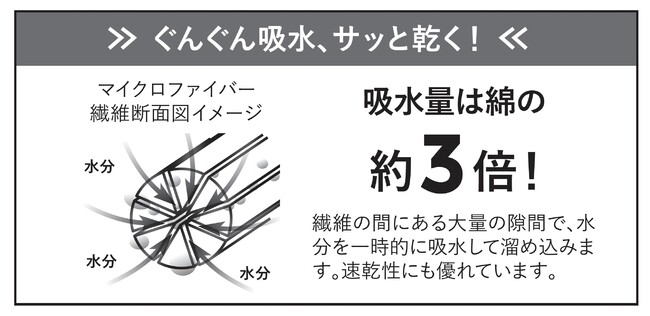 マイクロファイバーの細かい繊維の中に水分が入り込むので、なでるだけでも多くの水分を吸収してくれます。