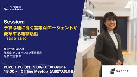 最適なAI会社やAIサービスの選定を支援するコンシェルジュサービス「AI Market」を運営するBizTech株式会社(東京都豊島区、代表取締役 森下 佳宏)が主催する、1月28日開催の国内最大級AIカンファレンス『AI Market Conference 2026』に登壇する株式会社Sapeet 尾形 友里恵氏の講演内容をお知らせ致します。