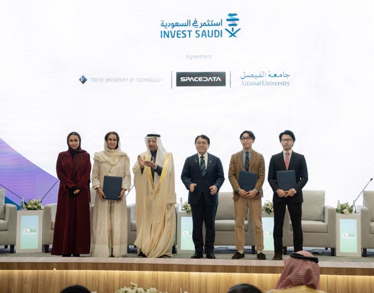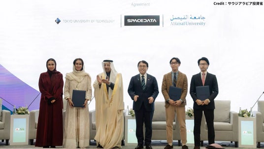 株式会社スペースデータ(本社:東京都港区、代表取締役社長:佐藤航陽、以下「スペースデータ」)は、2026年1月11日にサウジアラビアのリヤドで開催された日・サウジ閣僚投資フォーラムにおいて、アルファイサル大学イノベーションセンター(サウジアラビア)および東京工科大学デザイン学部と、宇宙・AI・デジタルツイン分野における人材育成、共同研究、ならびに研究成果の社会実装を一体的に推進することを目的とした三者間MOU(覚書)を締結しました。